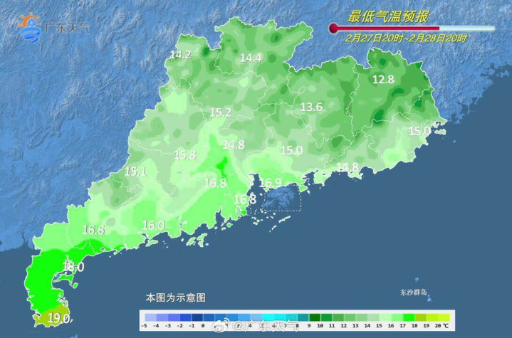 2月28日白天,广东省西北部市县阴天间多云,其余市县多云间阴天。早晨大部市县和粤西海面有(轻)雾,部分市县伴有轻度“回南天”。